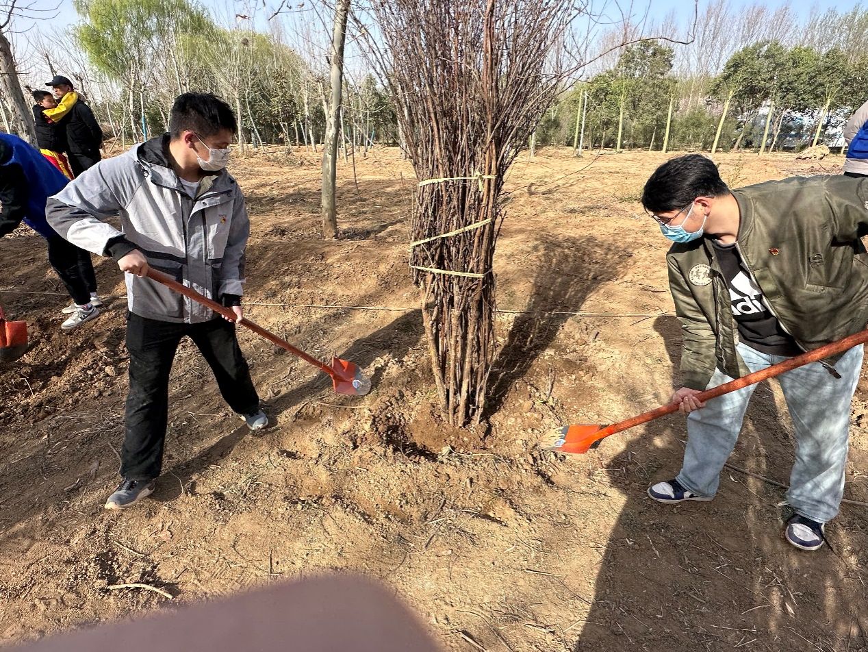 本科生第一党支部全体党员赴洛阳市伊滨区天囿牡丹园开展了以“植初心,种未来”为主题的植树节活动。