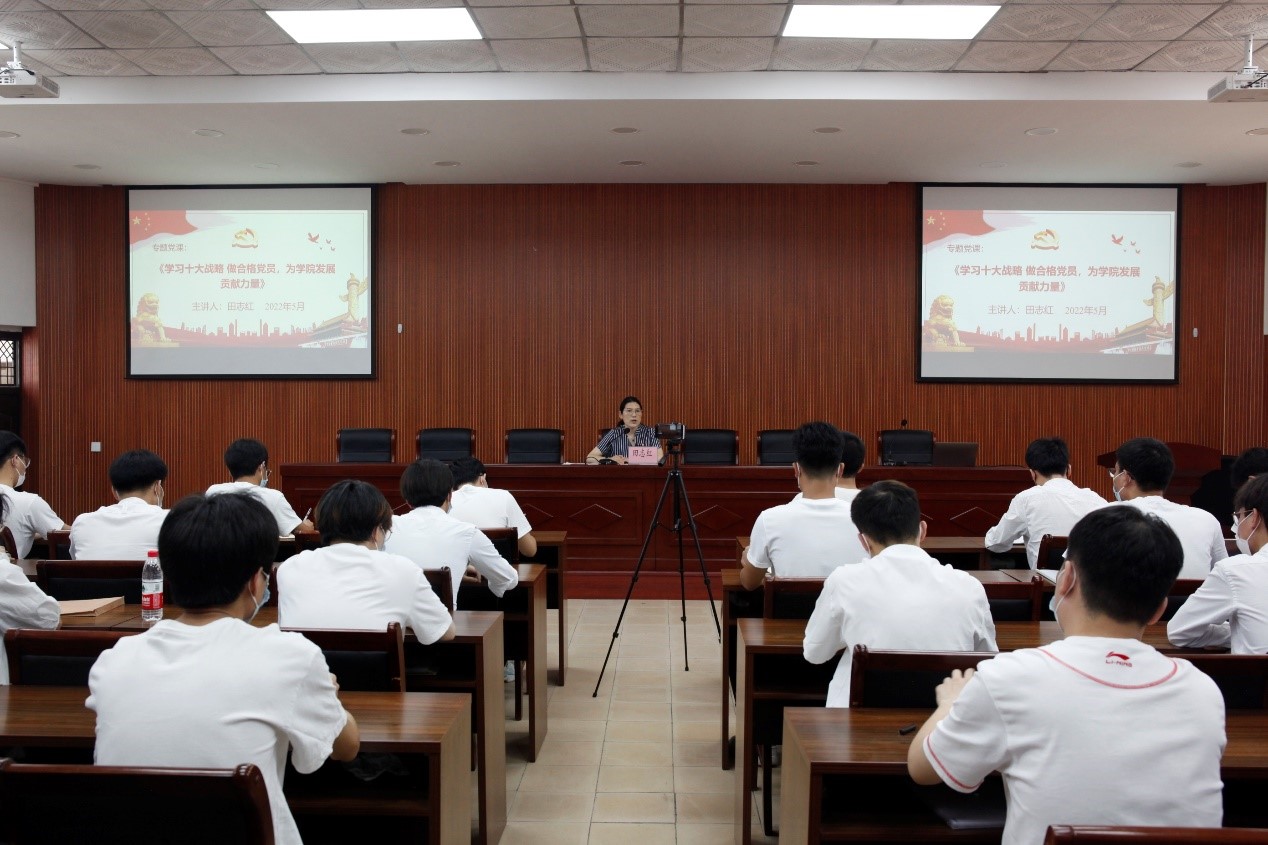 5月30日上午,学院2022年度预备党员集体谈话会在西苑校区6号楼101会议室举行。学院党委书记田志红出席会议并为新党员讲授专题党课,40名新发展党员参加会议,组织员李艳红主持会议。