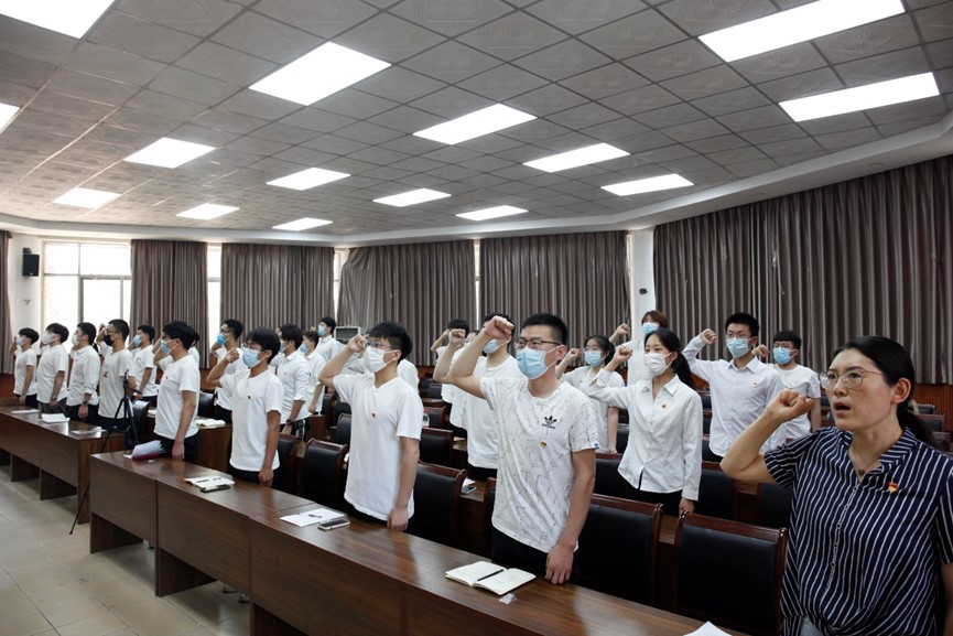 随后,田志红以专题党课形式对新党员进行了集体谈话并提出具体要求。专题党课以《学习十大战略 做合格党员,为学院发展贡献力量》为题,从省委提出的“十大战略”的背景、意义,向参会党员详细阐明了“十大战略” 的具体内容。同时,田志红结合学院实际,对新党员提出五点要求:一是要立大志,把个人的发展融入到党和国家的发展中去;二是要明大德,加强道德修养,追求更有品位的人生;三是要成大才,加强学习、不断创新,做社会主义合格建设者和可靠接班人;四是要担大任,脚踏实地、实学实干,培养吃苦耐劳精神;五是要提高政治站位,严格遵守学校和家庭所在地各项防疫规定,开启自律充实的暑假生活。