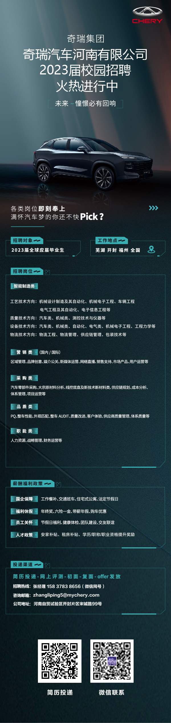 奇瑞汽车股份有限公司2023届校园招聘全面启动!