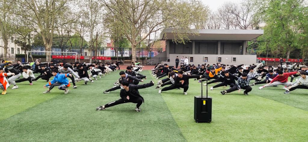 组织车辆学院20级全体同学在西苑田径场上举行太极拳训练。4月1日上午,各班级班委带领同学们练习太极拳,孟科旭等四位领队为同学们做出具体的动作展示。