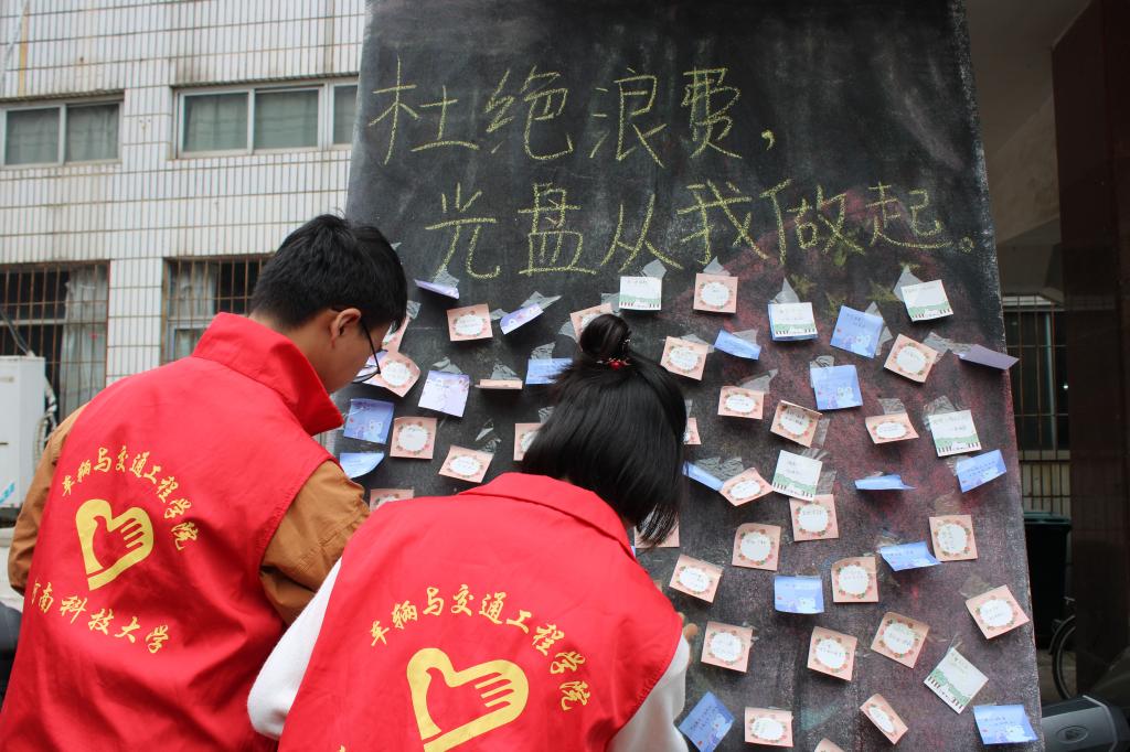 青年志愿者协会积极响应号召,开展此次世界粮食日宣传活动。会长发言结束后由青协各负责人接迎同学们到帐篷处,利用提前准备好的器材和设备展开了有关粮食知识的猜谜游戏。从节气到作物种类、成熟季节、国家对于粮食生产管理的政策等,谜语均有涉猎。同学们展开头脑风暴,现场气氛热烈,活动进展顺利。每位回答正确的同学还得到了小纪念品。紧接着同学们在纸条上写下对世界粮食日的祝福或关于“节约粮食,从我做起”的勉励话语并将其粘贴在小黑板上。最后在会长高栊含的宣布下活动圆满结束。