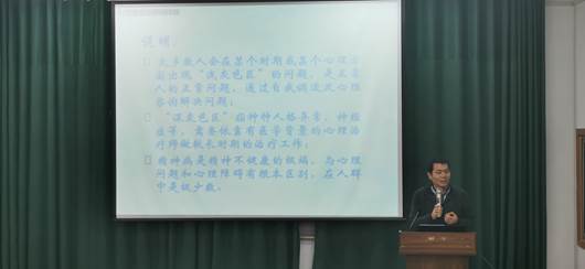 首先,黄老师针对大学生的情绪现状,分析大学生负面情绪产生的原因并提出应对策略,他指出大学生活中学习,人际关系,独立生活等方面适应不良的现象属于正常,大家应努力提高个人应变能力和承受挫折的能力,树立恰当的个人目标。接着,他列举丰富的案例让晦涩的理论变得浅显易懂,在这过程中,同学们认真听取老师传授的方法和经验。最后,黄老师就心理问题产生的深层原因给大家做了分析,并就一些普遍的心理问题,提出了自我调适的方法。