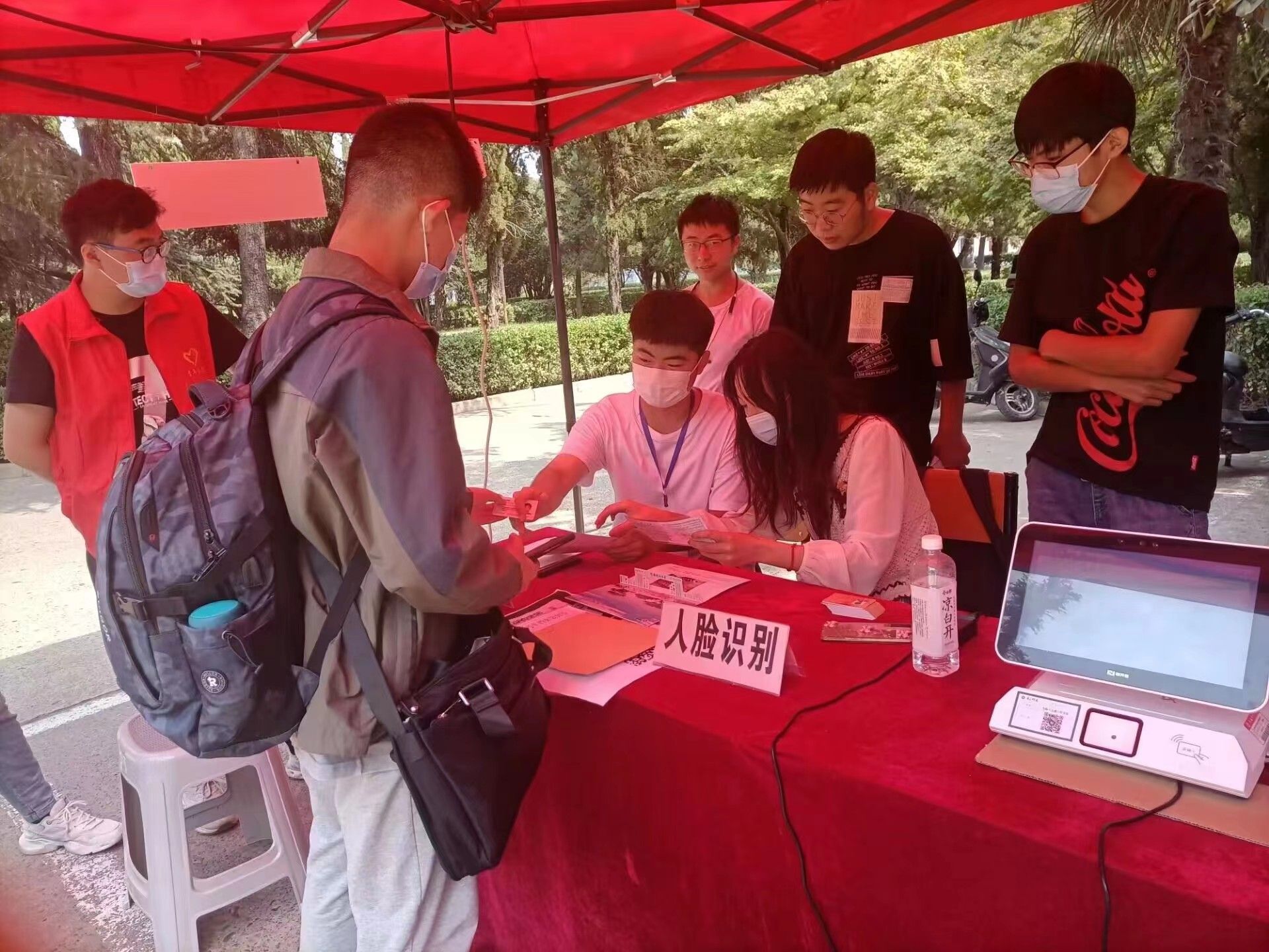 为保障新生安全、便捷地入校,学院安排志愿者在火车站、汽车站设立了迎新点,引导新生乘坐学校大巴到达校园。新生通过严格的疫情防控检查成功入校后,志愿者引导其前往三号楼前的学院报到处进行身份核验。随后,志愿者在学院报到处协助辅导员完成新生报到流程和信息登记。最后,志愿者热心地帮助新生搬运行李,引领新生前往宿舍,并在沿途详细介绍了学校的基础设施和新生注意事项。