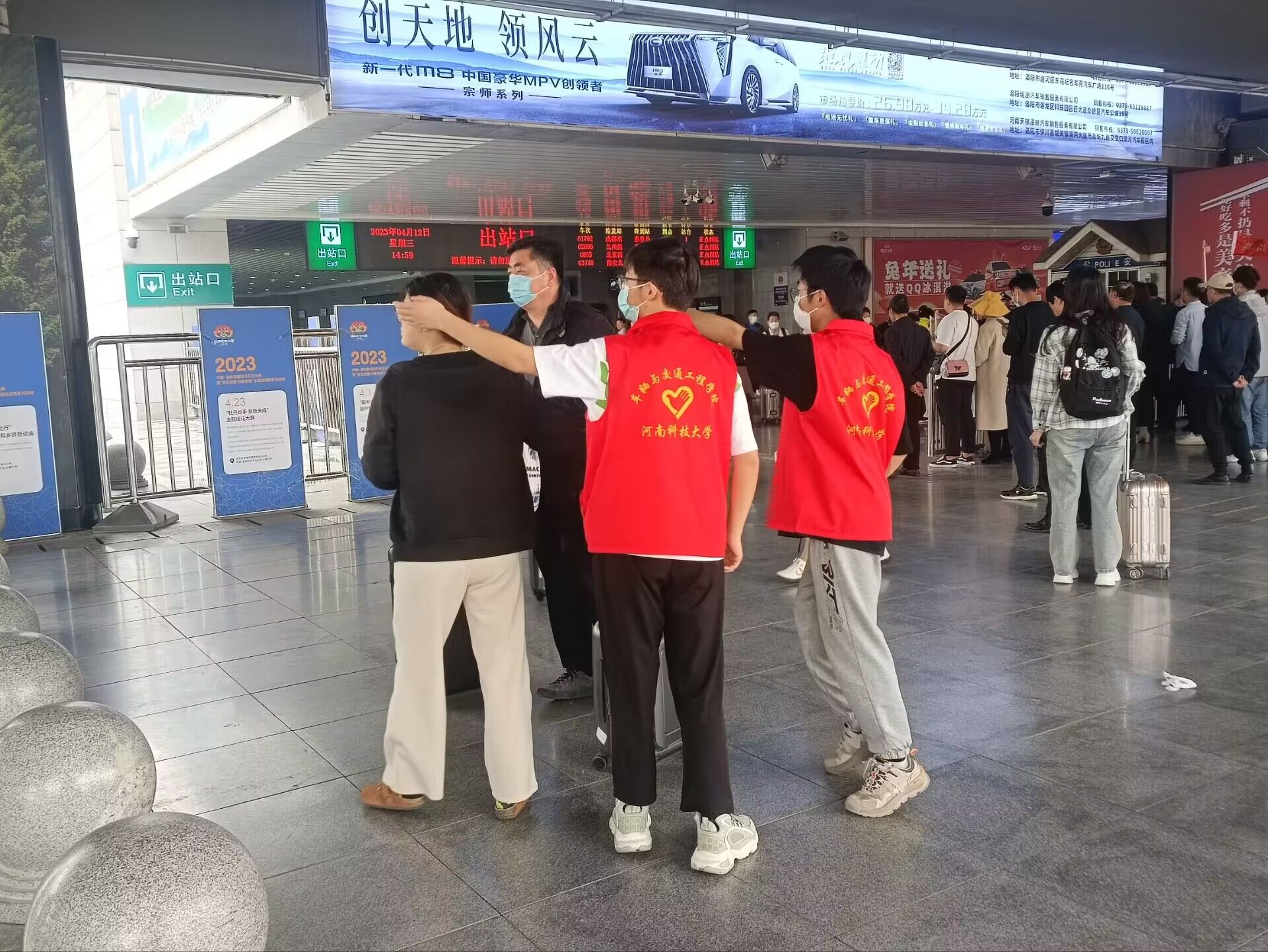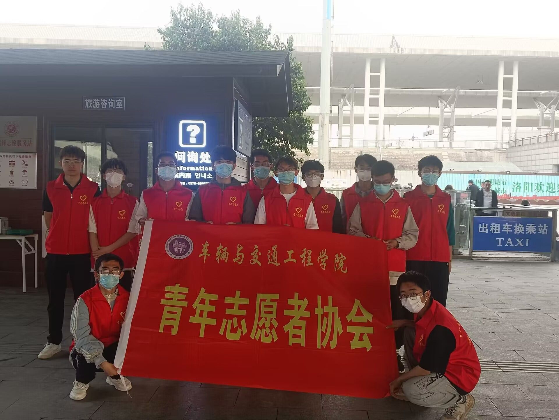 组织青年志愿者协会在洛阳龙门高铁站举办“高铁载客享洛阳美景,龙门迎宾赏牡丹盛宴”志愿服务活动。学院近20名青年志愿者参加活动。