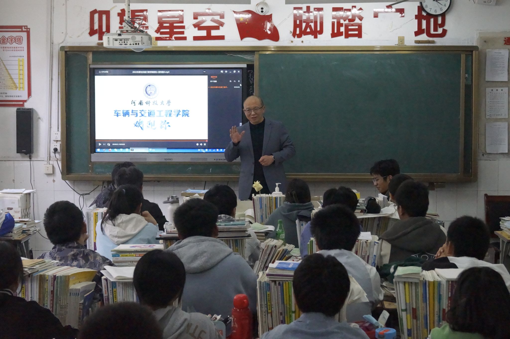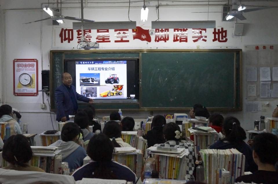 组织教师宣讲团前往洛阳师范学院附属中学开展优质生源基地招生宣讲活动。此次宣讲活动由学院车辆工程专业导师郭占正、能源与动力工程专业导师贺滔、交通运输专业导师赵伟主讲。
