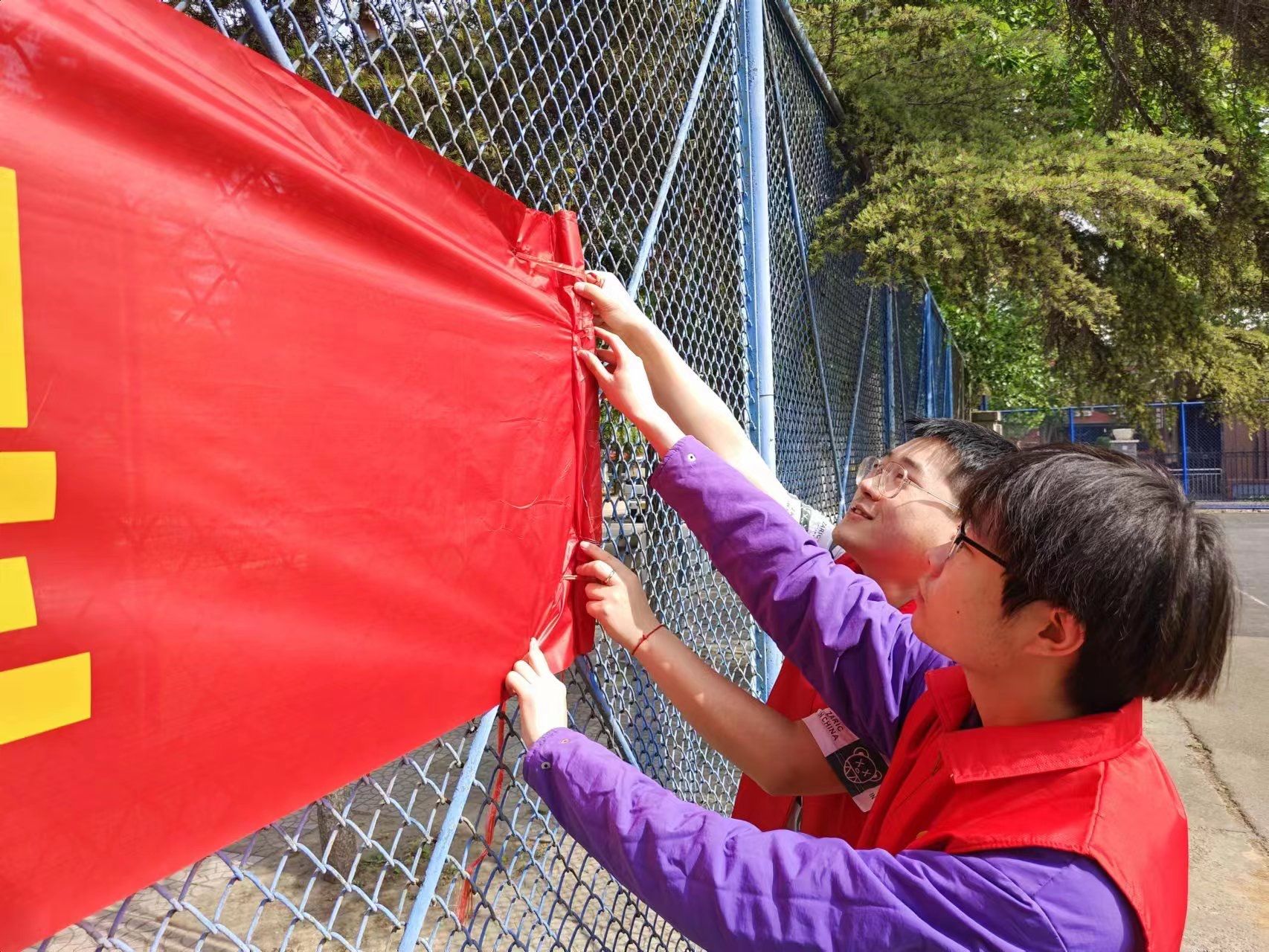 主办、院青年志愿者协会承办的“曙光辉映盛夏,志愿护航军训”活动在西苑校区篮球场举行。学院青年志愿者们积极参加此次活动。