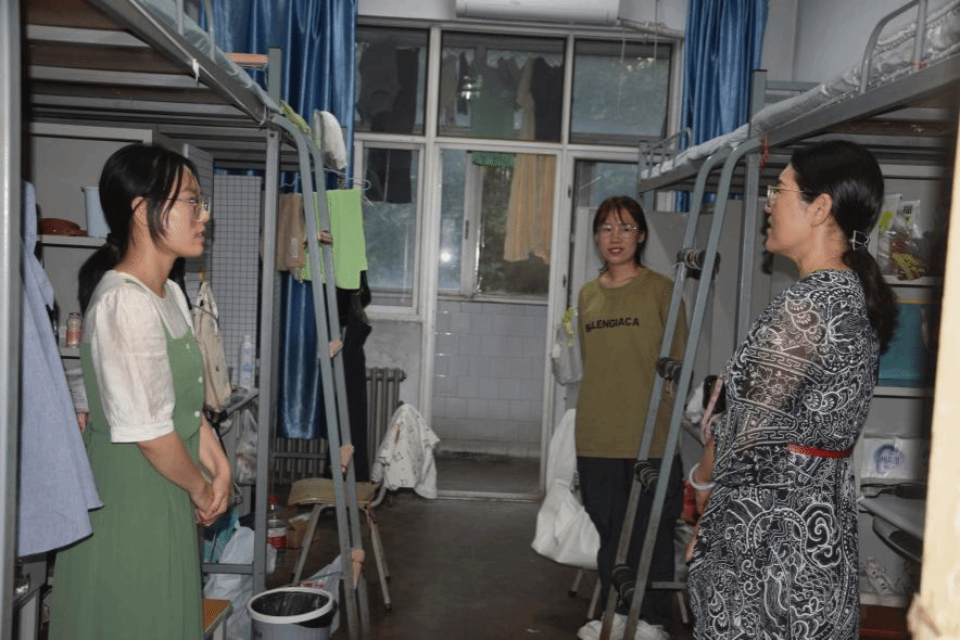 9月7日下午,学院领导班子成员带队深入学生宿舍开展慰问活动。院党委书记田志红与辅导员索榕、董文铮、李艳红前往女生宿舍,党委副书记陈建峰、副院长王学涛、副院长梁坤峰、本科生辅导员张亮亮、研究生辅导员郑景阳前往男生宿舍。