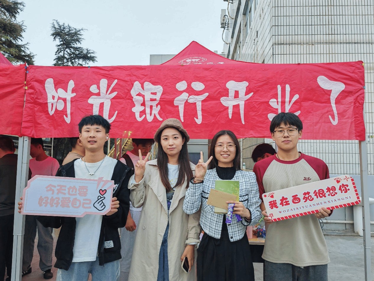 在西苑校区南院餐厅门口举办以“培育健康心灵,守护美好未来”为主题的时光银行活动。活动由院心理健康部承办,面向西苑校区全体同学开展。