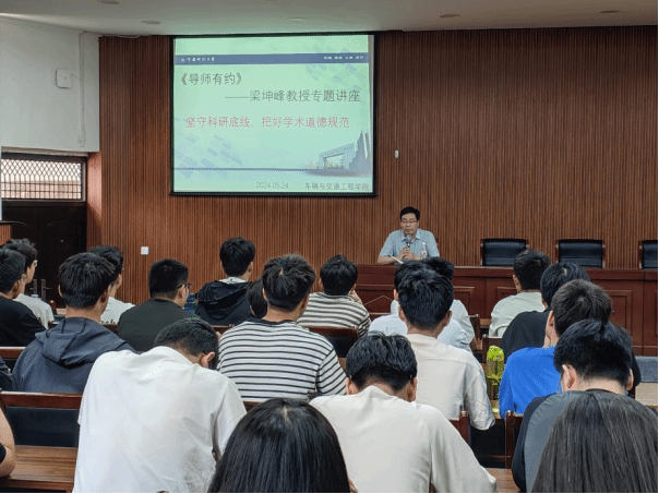 研究生作题为“坚守科研底线,把好学术道德规范”的专题讲座,全校研究生代表参加讲座。讲座由车辆学院研究生会副主席侯家兴主持。