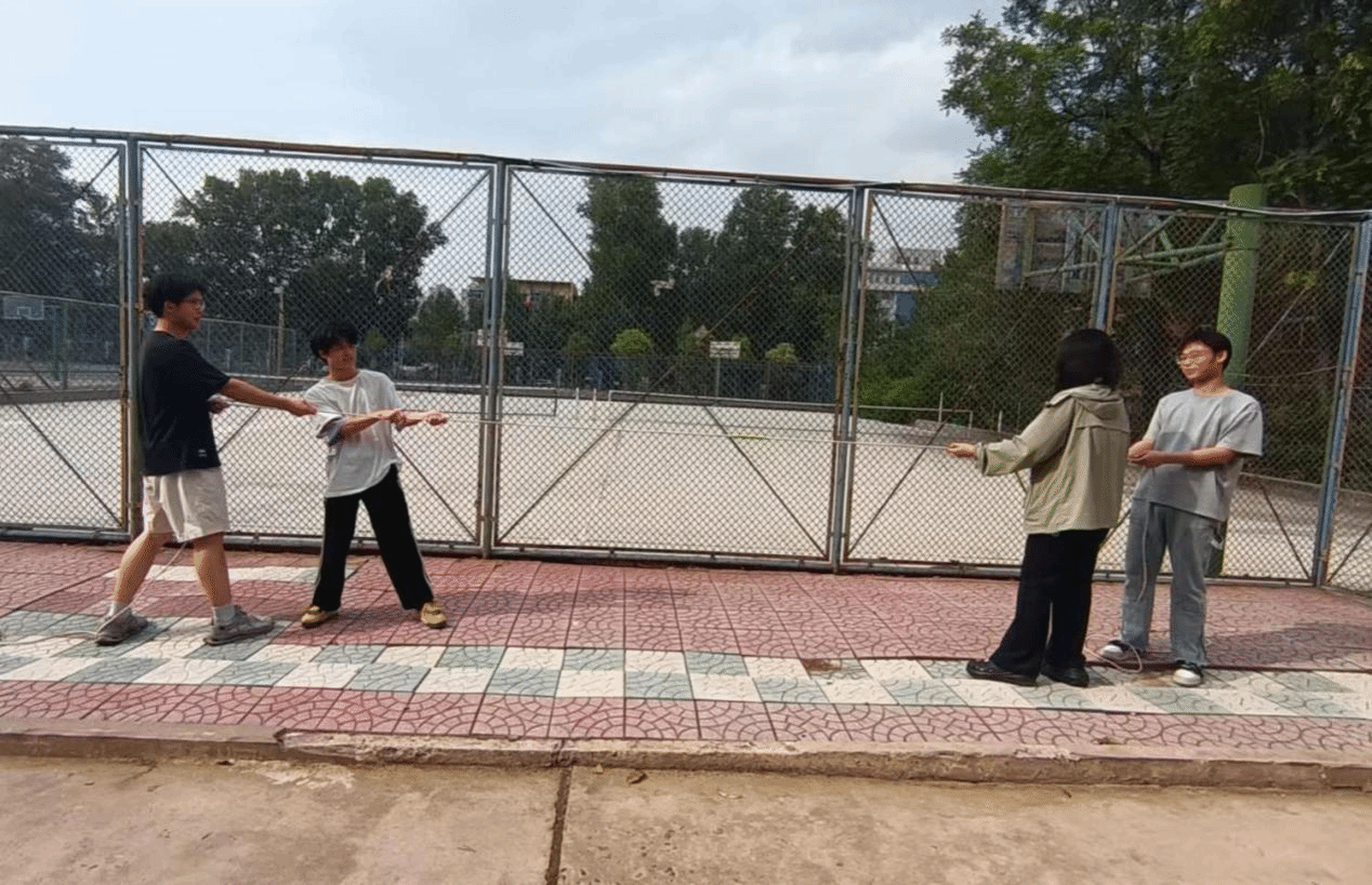 在篮球场举办了以“绳牵心有力,拔走负情绪”为主题的心理健康月拔河比赛。