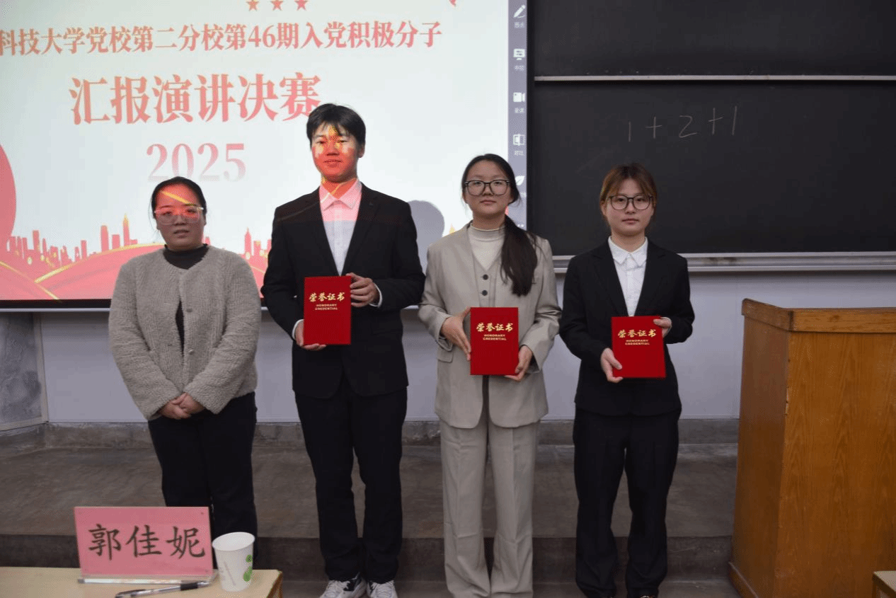 王金垚、范嘉庆、郭嘉乐等十名入党积极分子依次登台演讲,展现青春风采。经评委综合评审打分,最终评选出演讲比赛前三名:王昕月、杜志强、索明媛。郭佳妮为演讲比赛获奖学员颁发荣誉证书。随后,会议宣读本期培训班优秀学员名单:冯江怡、秦岩岩、赵文若、马浩健、徐月、周俊如。李艳红为优秀学员颁发荣誉证书。