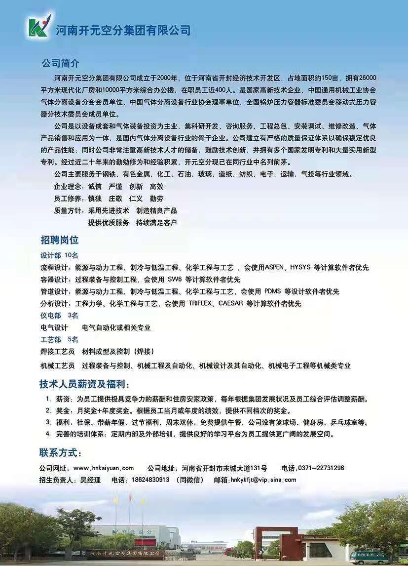 河南开元空分集团有限公司招聘信息