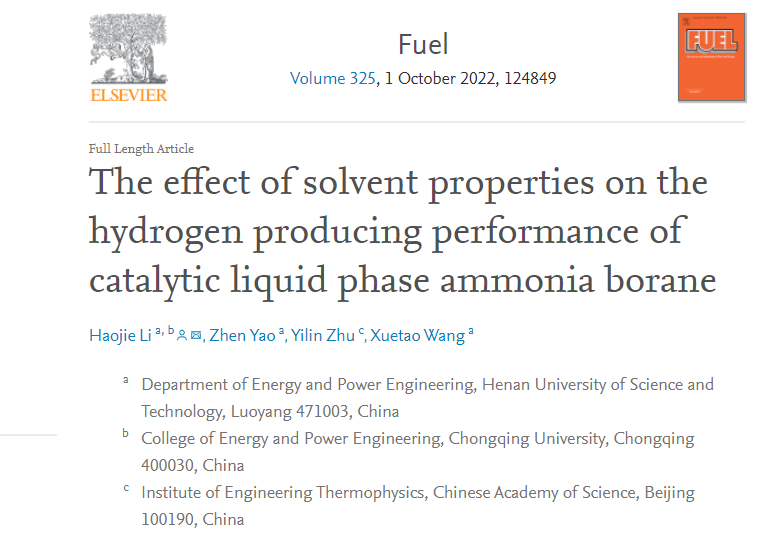 该项研究在联合重庆大学、中国科学院工程热物理研究所等单位密切合作完成。研究成果对氨硼烷制氢技术在移动式氢燃料电池和便携式能源装备的应用提供基础数据支撑。