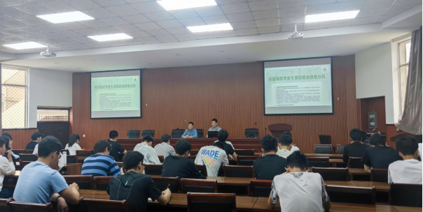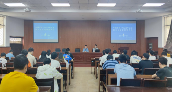 在西苑校区6号楼101会议室召开了2022届毕业生就业创业政策宣讲会,院党委副书记陈建峰、2018级辅导员张亮亮和2018级全体班委参加会议。