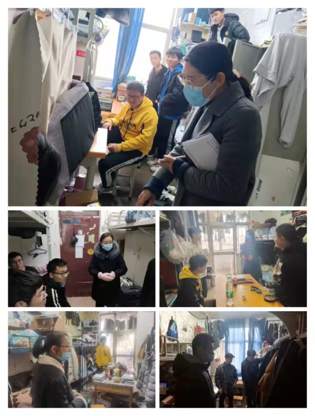 党委书记田志红带领各年级辅导员前往学生宿舍,开展疫情防控查寝走访工作。