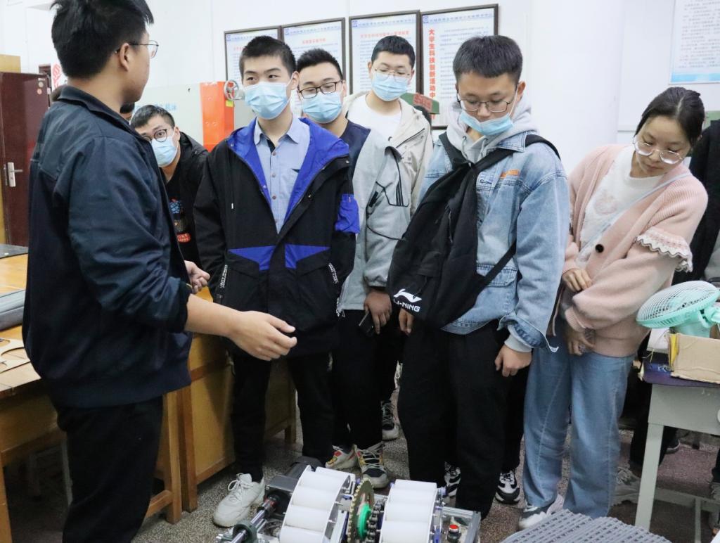 采取错峰参观的方式组织2021级新生参观科技创新协会工作室和项目实物展厅。